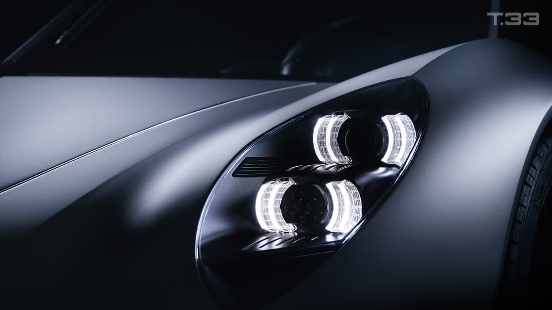 THE NEW T.33 SPIDER COMBINES THE BEAUTIFUL, TIMELESS DESIGN OF THE T.33 WITH AN EVEN MORE IMMERSIVE, ENGAGING DRIVING EXPERIENCE. WITH TWO REMOVABLE ROOF PANELS, A DEPLOYABLE REAR WINDOW AND THE COSWORTH GMA.2 V12 BEHIND THE CABIN, THERE IS NO OTHER SUPERCAR LIKE IT.